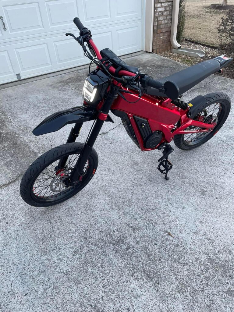 The Talaria xXx red edition utilizes a built in battery which can be removed in about 5 minutes after taking off the rear wheel, and releasing a quick release on the rear suspension. It is a 40ah max 38.4ah nominal battery consisting of 128 LG M-50 21700 cells in 16s8p configuration. Its 2400 watt hours and efficient IPM motor should give you a more effective range.